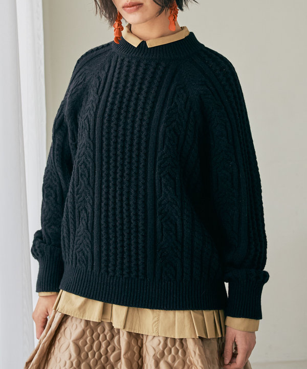 ・セーター カシミヤウールケーブル編みプルオーバー