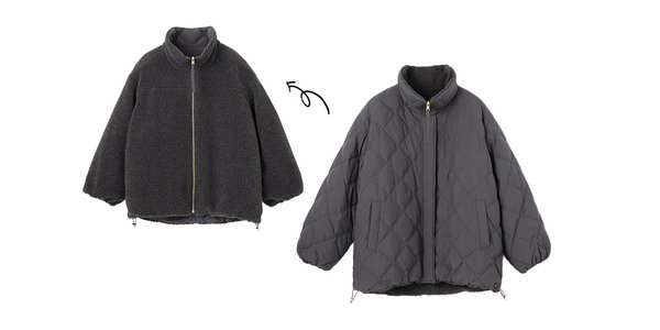 2通りの着こなしが楽しめるリバーシブルダウン。