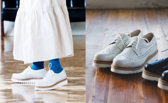 3色展開の中でも特におすすめはホワイト。足元に透明感を与えるホワイトレザーに、