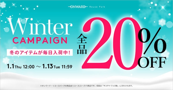2026年1月1日(木)12:00~2026年1月13(火)日11:59まで、全品20%OFFキャンペーン!開催