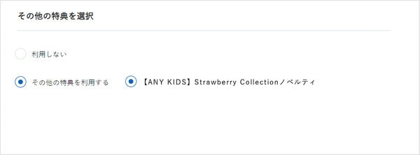 「その他特典を利用する」⇒「【ANY KIDS】Strawberry Collectionノベルティ」を選択してください。