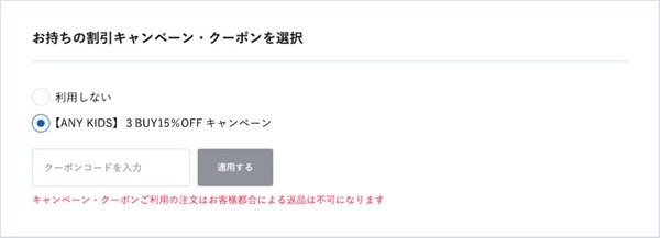 【ANY KIDS】3BUY15%OFFキャンペーンを選択