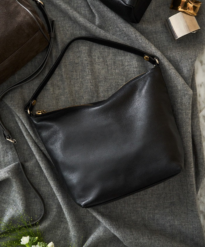 本革の柔らかさが大人のスタイルに自然にフィット。