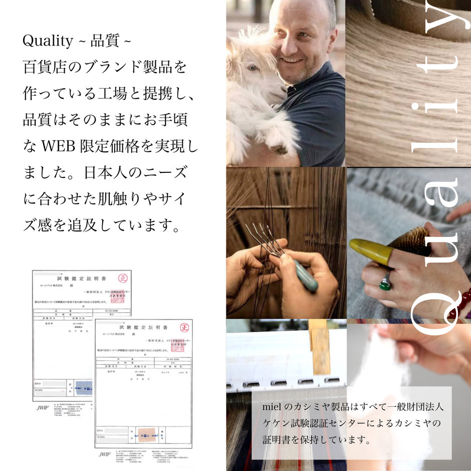 カシミヤを使用したふんわりと柔らかな肌触りが特徴となっており、