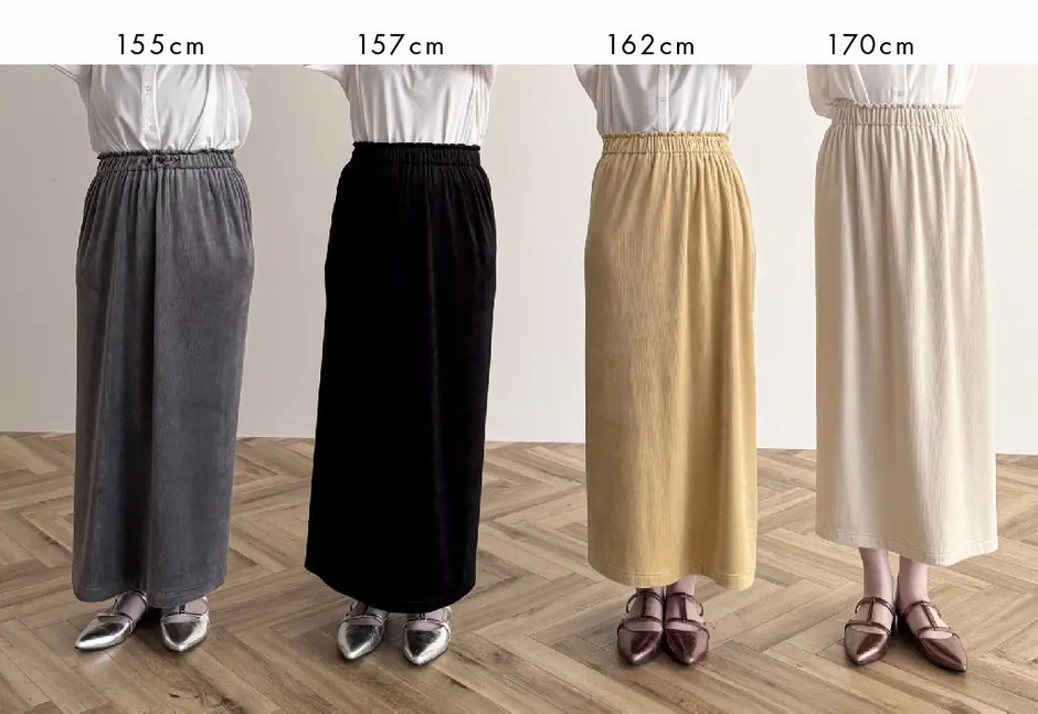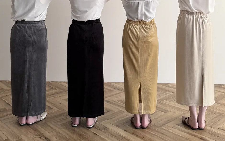 ④ウエストゴム仕様とスリット入りで、快適な穿き心地。