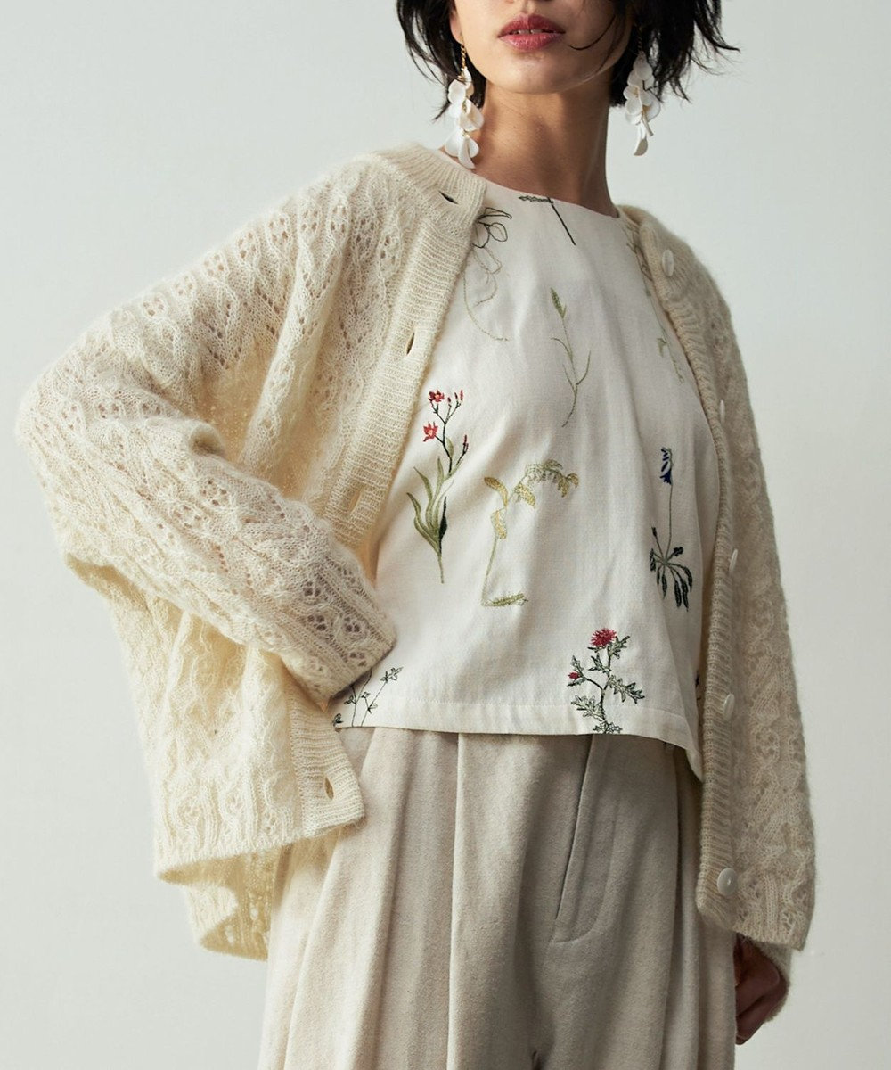 複数色の糸で編み上げ、ヴィンテージ服のような深みのある表情に仕上げた、どこかなつかしいデザインです。