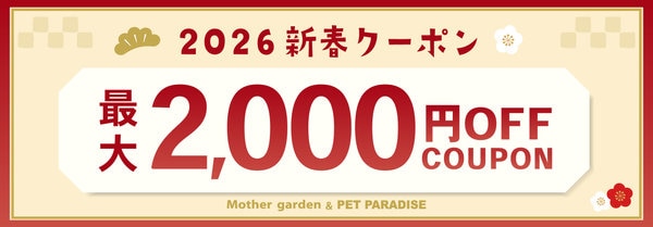 マザーガーデン・ペットパラダイスからの新春お年玉♪『最大2,000円OFFお買い物キャンペーン』を開催いたします!