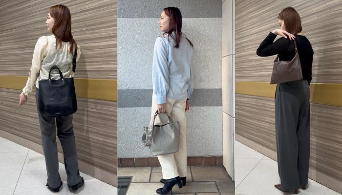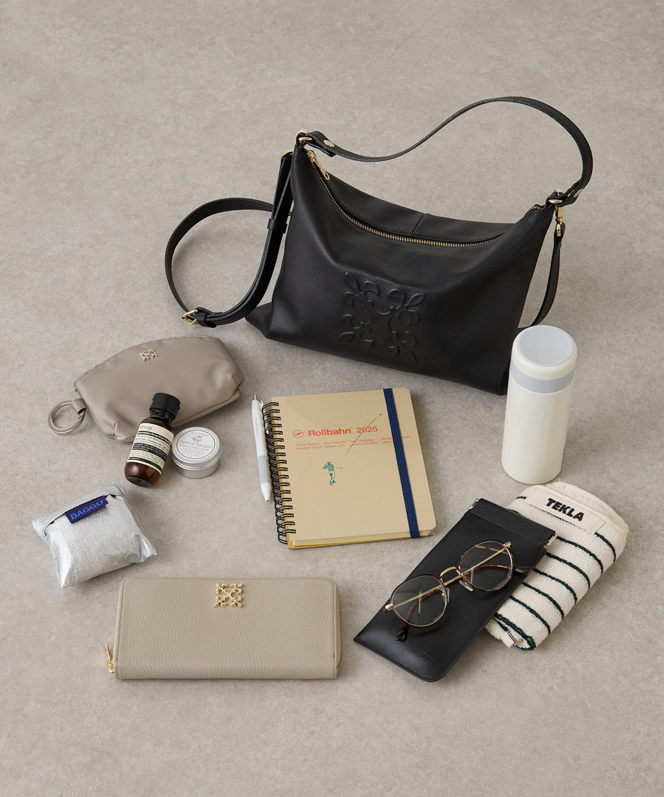 滑らかな手触りと軽やかさが魅力のソフトレザーに、立体感のあるエンボス加工でモノグラムを表現。