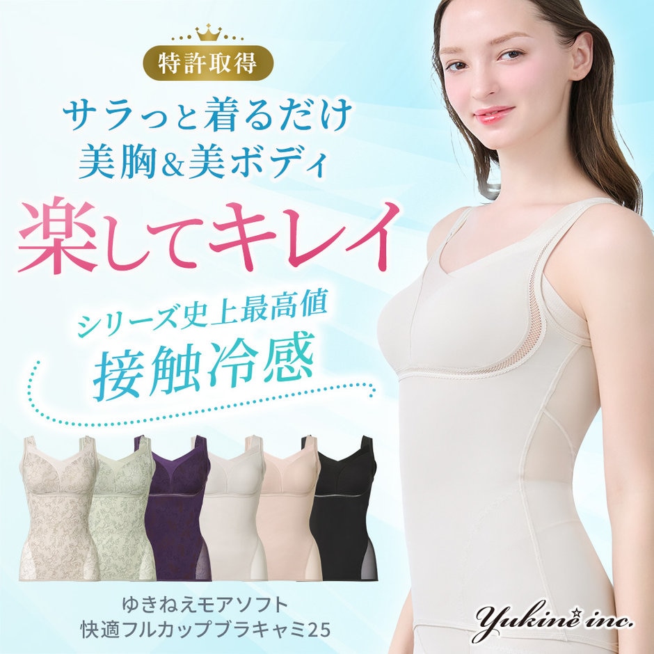 【Yukine inc. 】ゆきねえモアソフト快適フルカップブラキャミ25 接触冷感 速乾 快適補整 ノンワイヤー ブラトップ カップ付きインナー