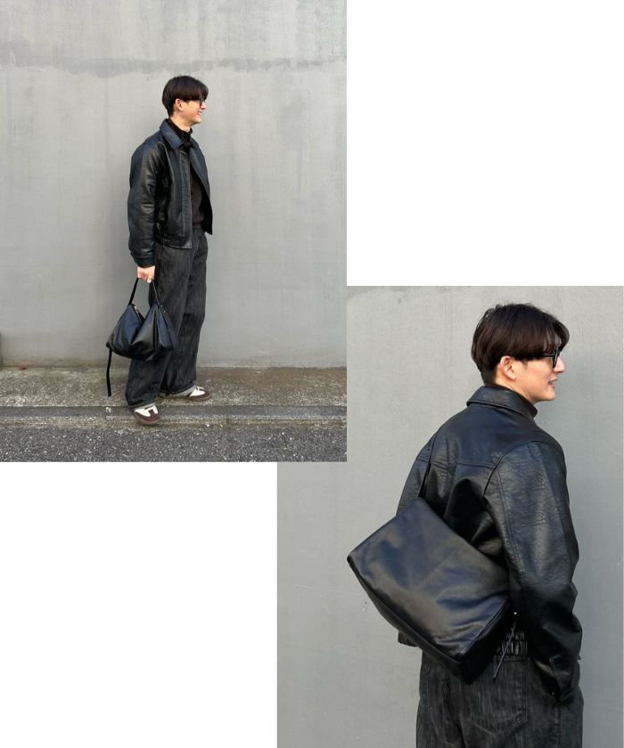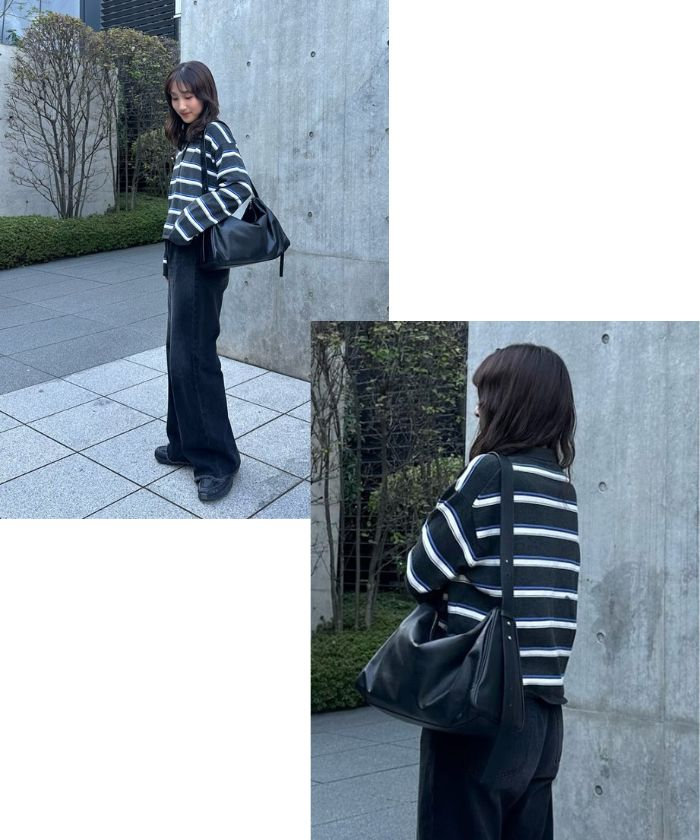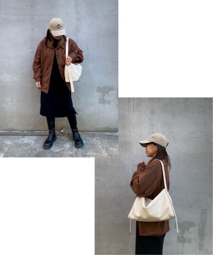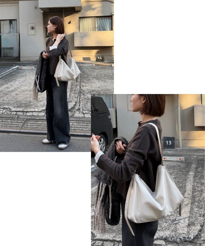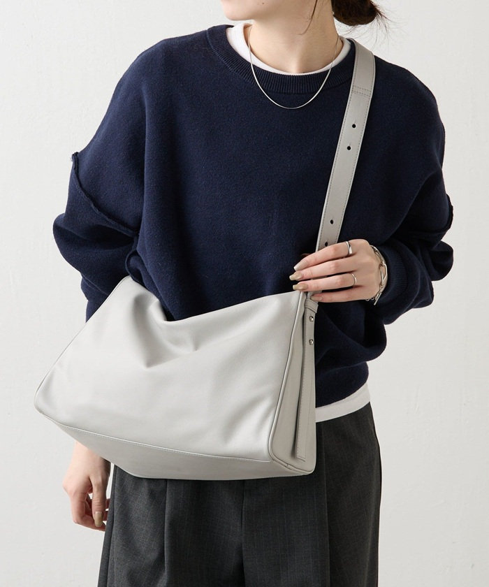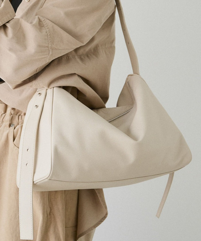 静かなアクセントを効かせたショルダーバッグ。