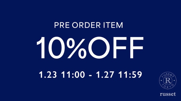 russetでは1月23日(金)11:00~1月27日(火)11:59までPRE ORDER ITEM 10%OFFを開催!