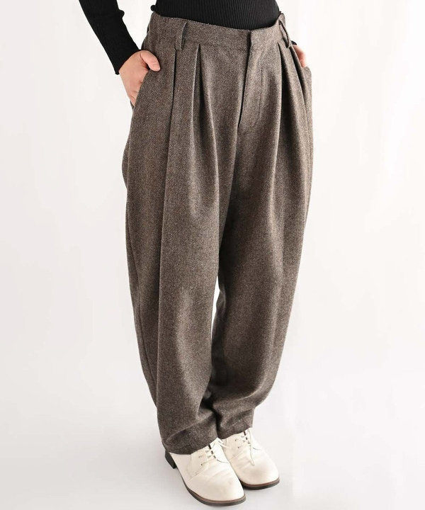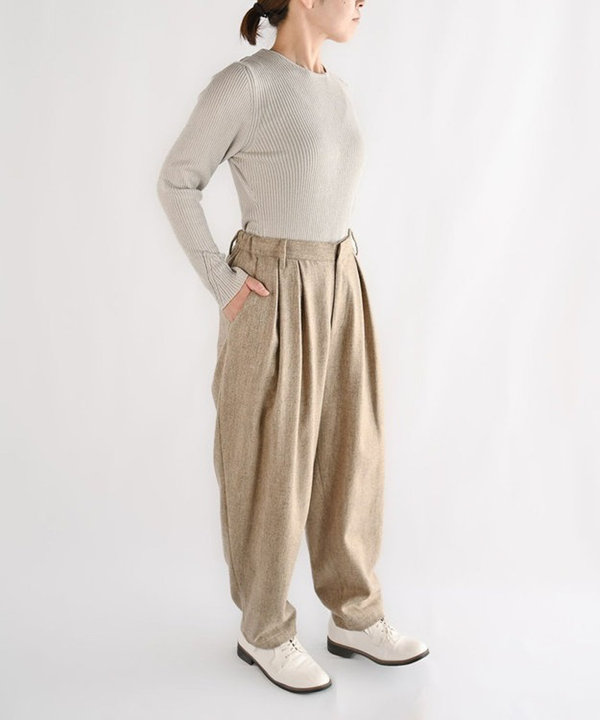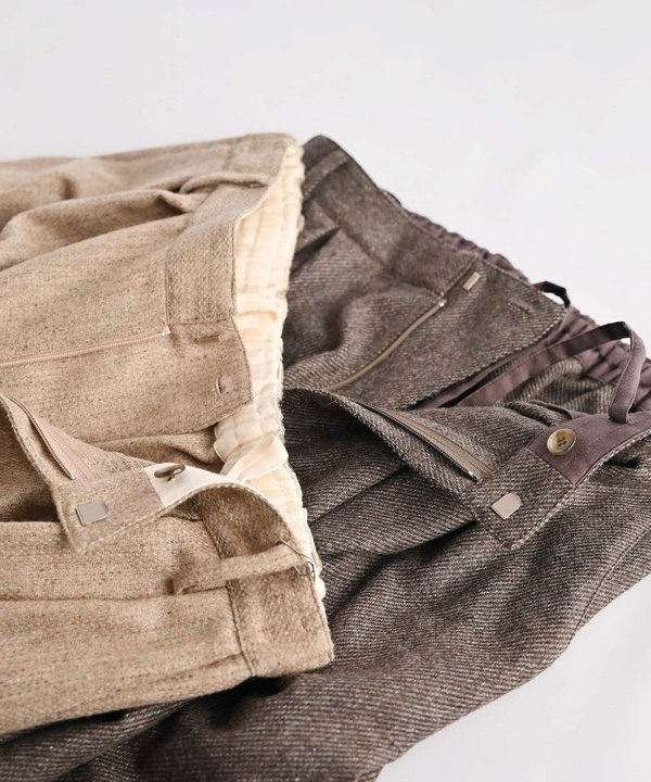 本日ご紹介するmuucのスラックスは、ウエストゴムや紐で調整ができる仕様です。