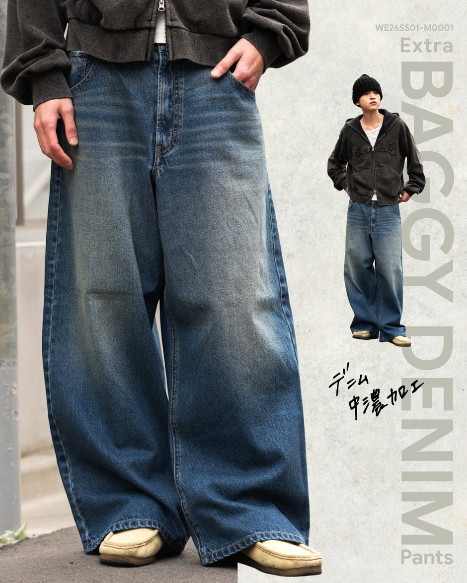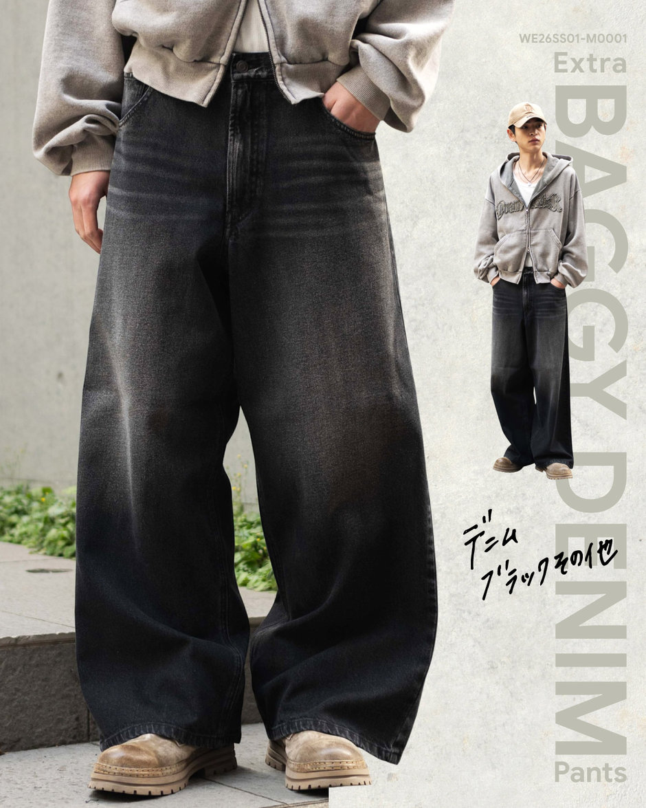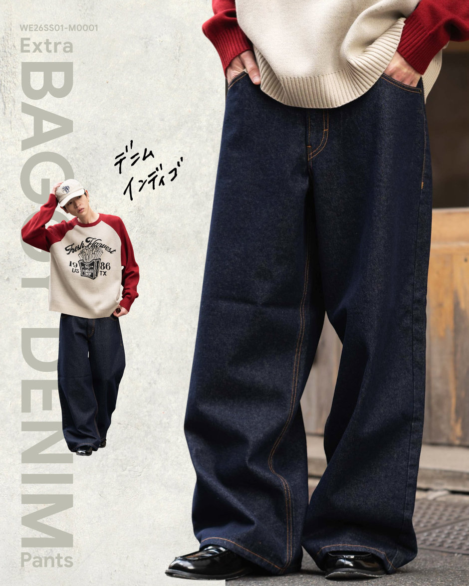 【SMLサイズ展開】エクストラバギーデニムパンツ