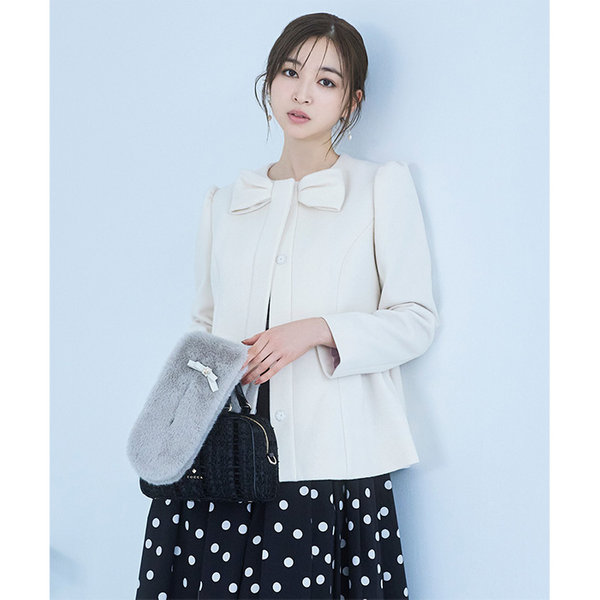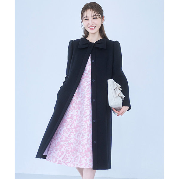 顔周りのリボンモチーフがポイントのコート。