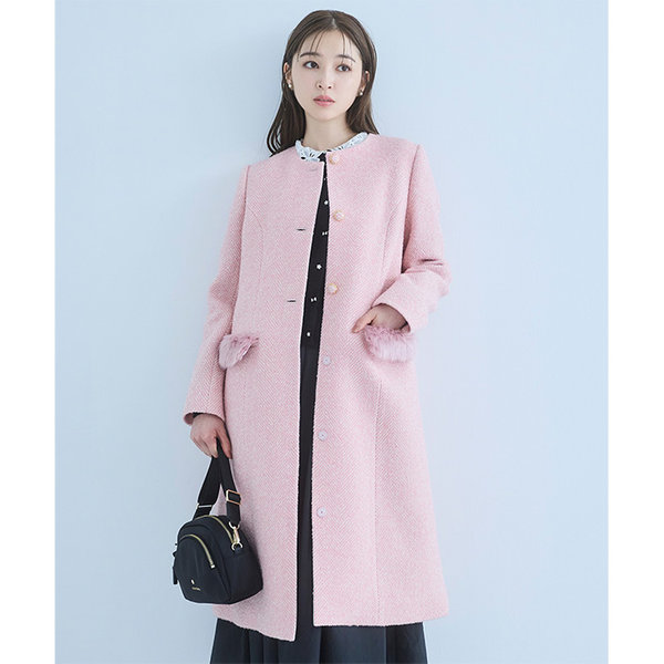 ツイードやファーなどデザイン性が盛りだくさんなコートは低身長の味方。