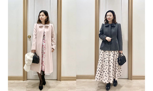 コートインのドレスやスカートとのコーディネートを楽しんで。