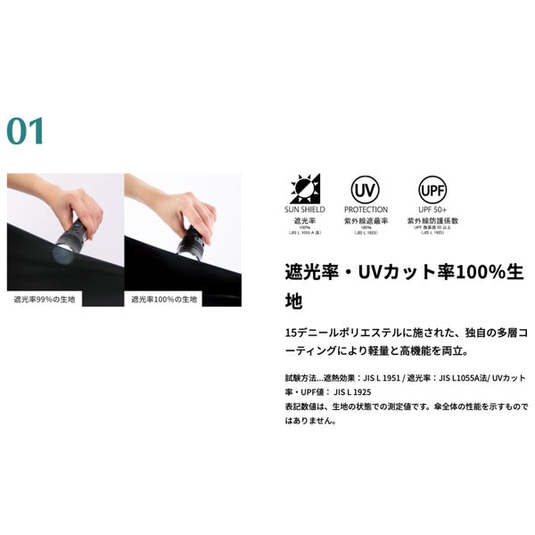 表記数値は、生地の状態での測定値です。傘全体の性能を示すものではありません。