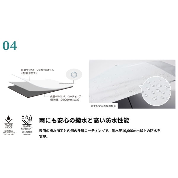 >雨にも安心、雨傘と同等レベルの最高等級の5級撥水