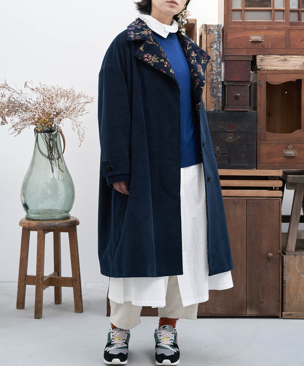・「muucの服が好きな理由は、ひとつではありません。たまらなく綺麗な色。ひとつひとつ個性の違う質感。刺繍生地、毛糸の純粋な美しさ。手抜きのない縫製。そして、これが一番なのかもしれませんが、不思議なくらい気持ちよくわたしの体をおさめてくれるサイズ感。特にコートやジャケットなどのアウターがお直しなしでぴったり合うことに、毎回驚かされています。」
