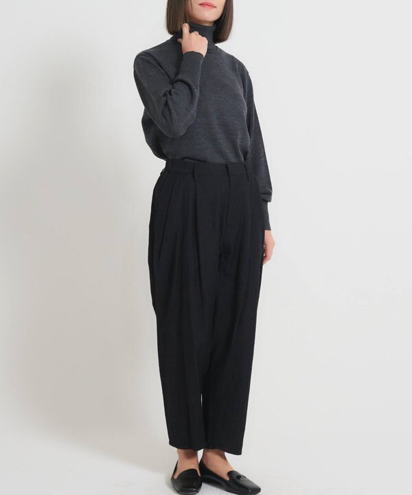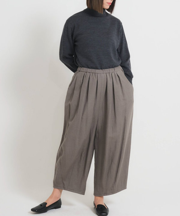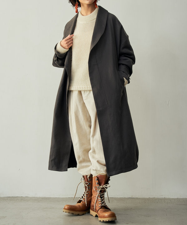 小柄な方から背の高い方まできれいに着ていただけるのは、20年以上にわたるmuucの洋服制作の経験を元に計算し尽くされたパターン、そしてきれいなシルエットを生む素材の力だと思います。