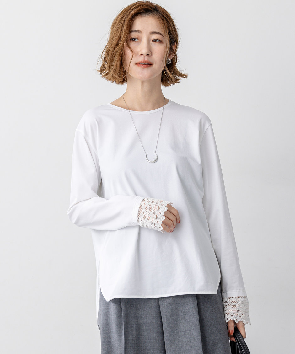 ◆ナチュラルコットンベア レースレイヤード カットソー ¥12,980(税込)