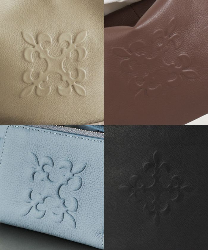 滑らかな手触りと軽やかさが魅力のソフトレザーに、立体感のあるエンボス加工でモノグラムを表現。