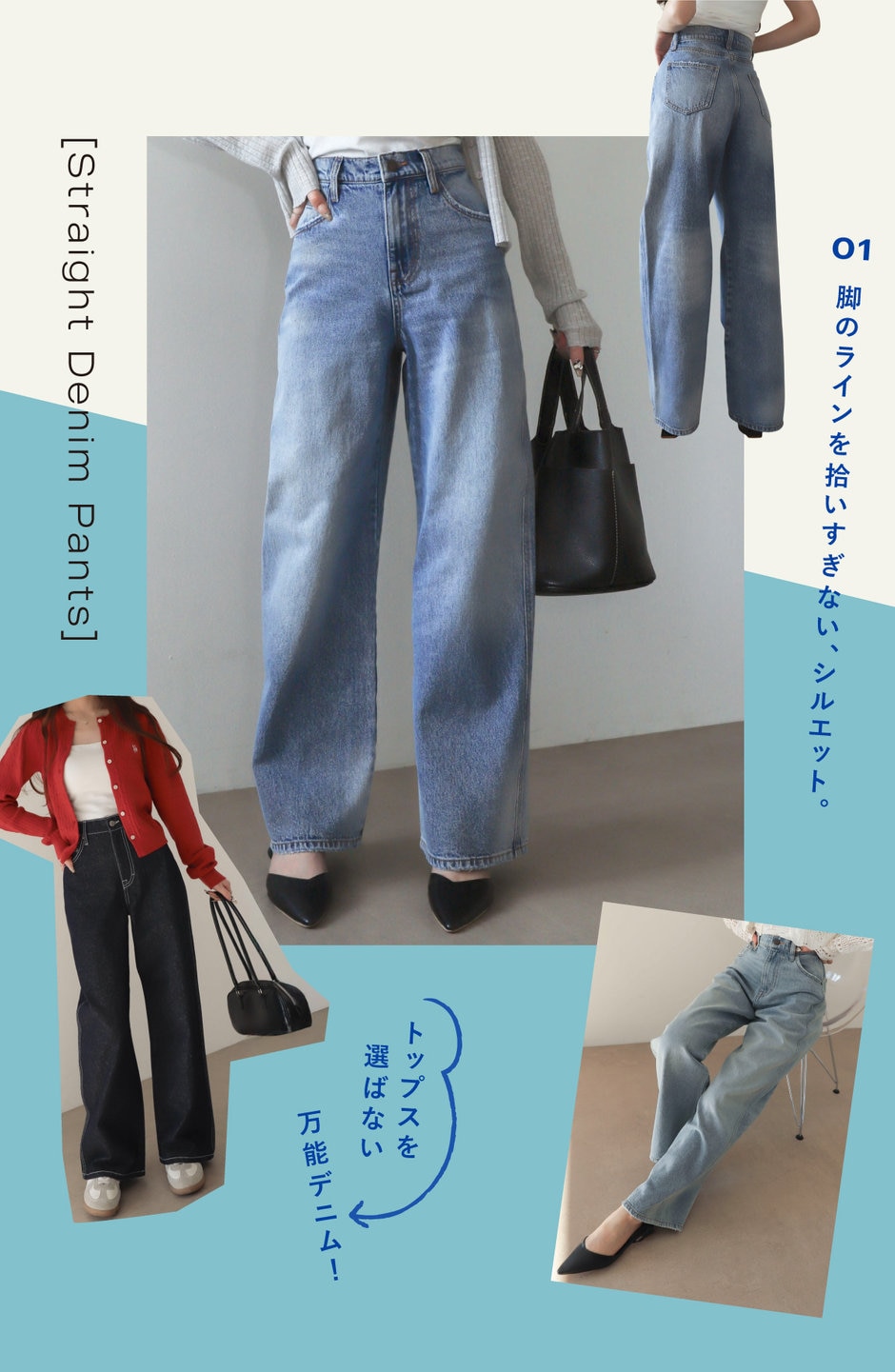 【XS~Lサイズ展開/美脚】ストレートデニムパンツ