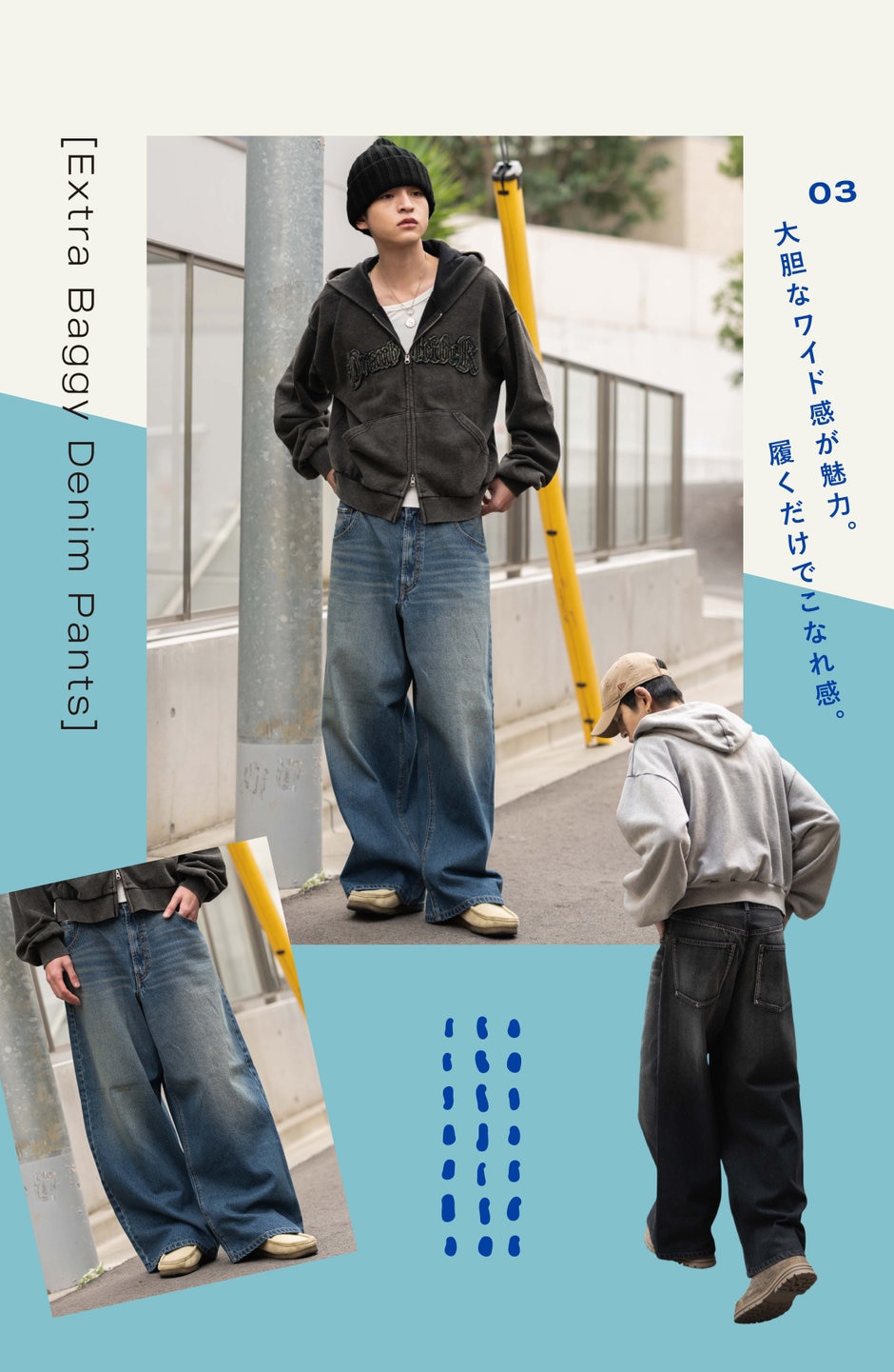 【SMLサイズ展開】エクストラバギーデニムパンツ