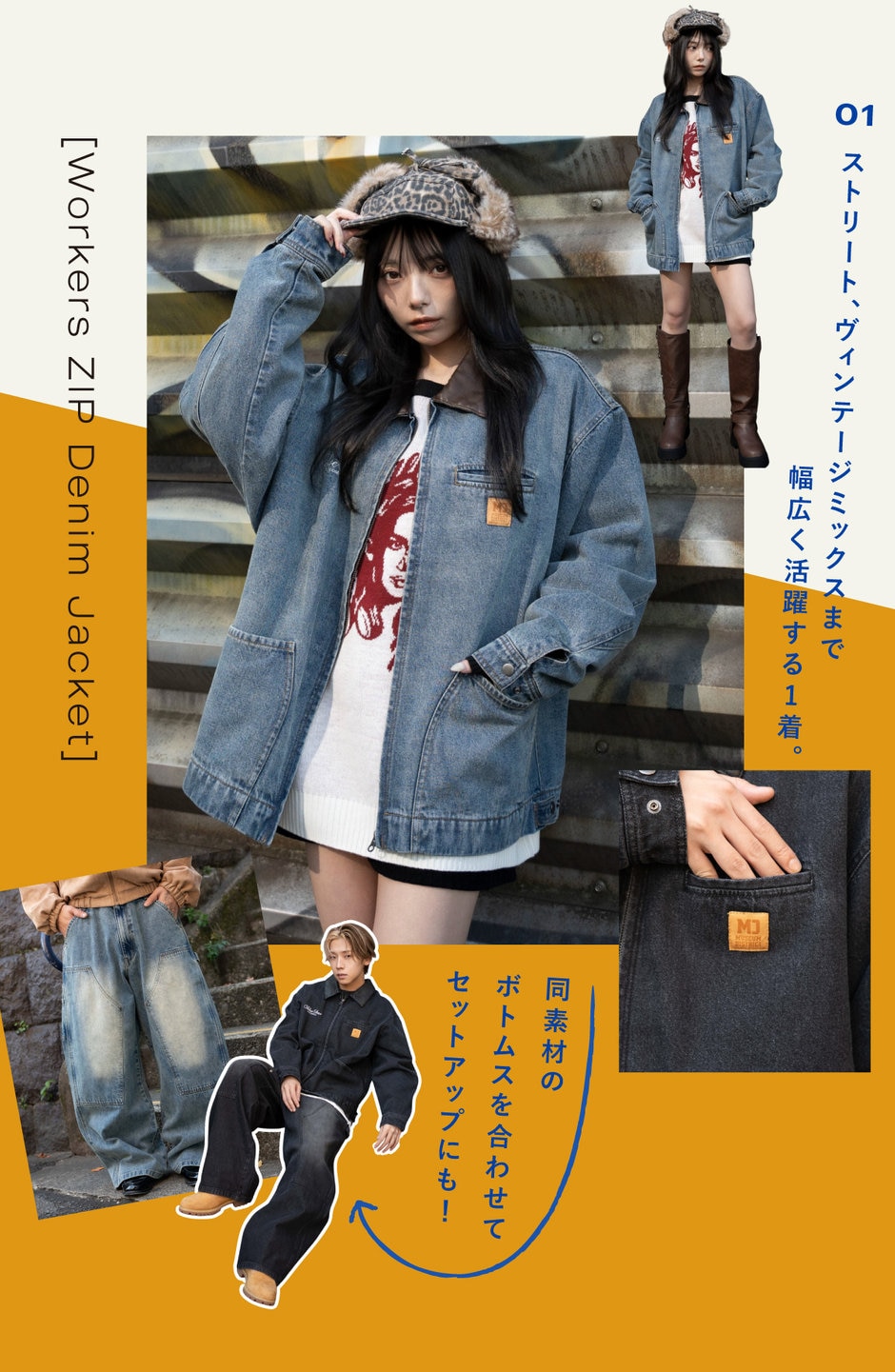 【ユニセックス着用ITEM/MLサイズ展開】ワーカーズZIPデニムジャケット