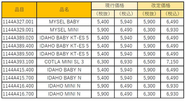 このたび、原材料等の各種コストの高騰により、2026 年 SS シーズンより対象商品の上代を下記のとおり