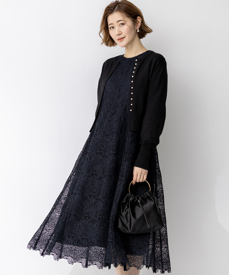 上品なレース使いが魅力のドレスの着こなしとともに、お呼ばれシーンにふさわしいジャケットやカーディガンなど、特別な日の装いを彩るアイテムをご紹介します。ぜひご覧ください。