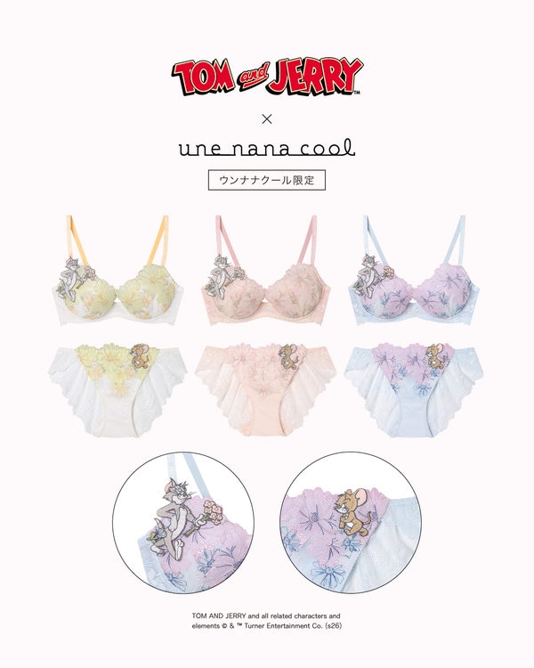 ネコのトムを大胆なアップリケで表現した「トムとジェリー」コラボのブラジャーと、