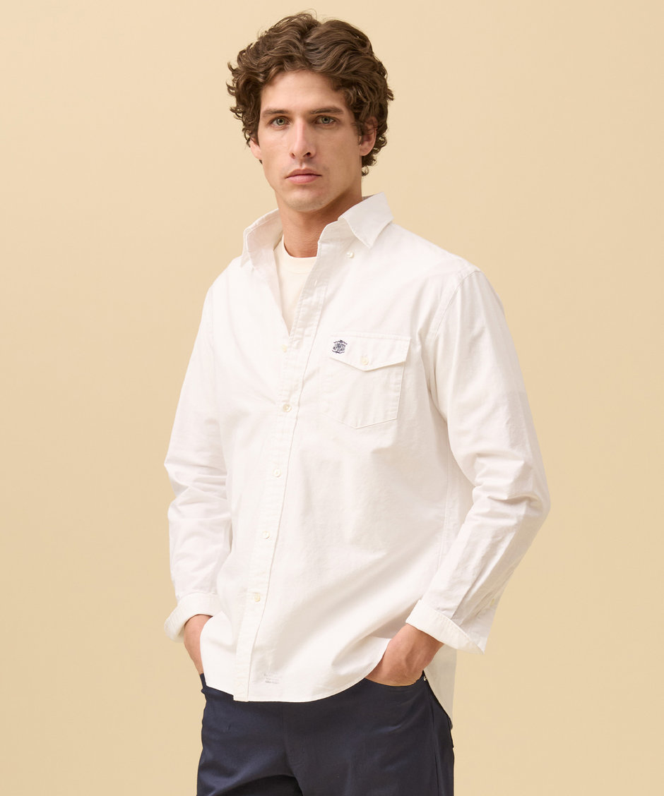 胸元の控えめなブランドロゴ刺繍が光る!新作アイビーシャツ。