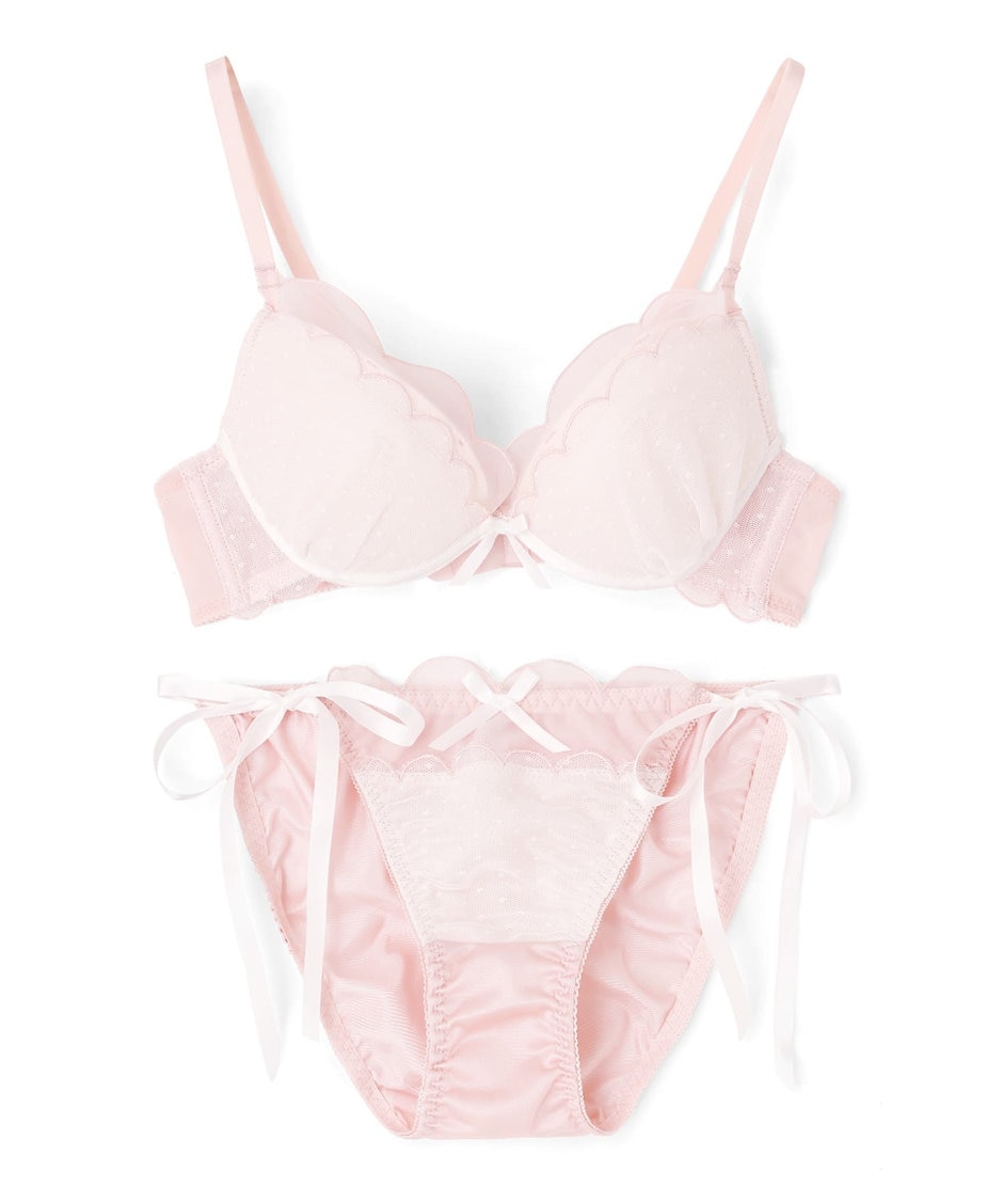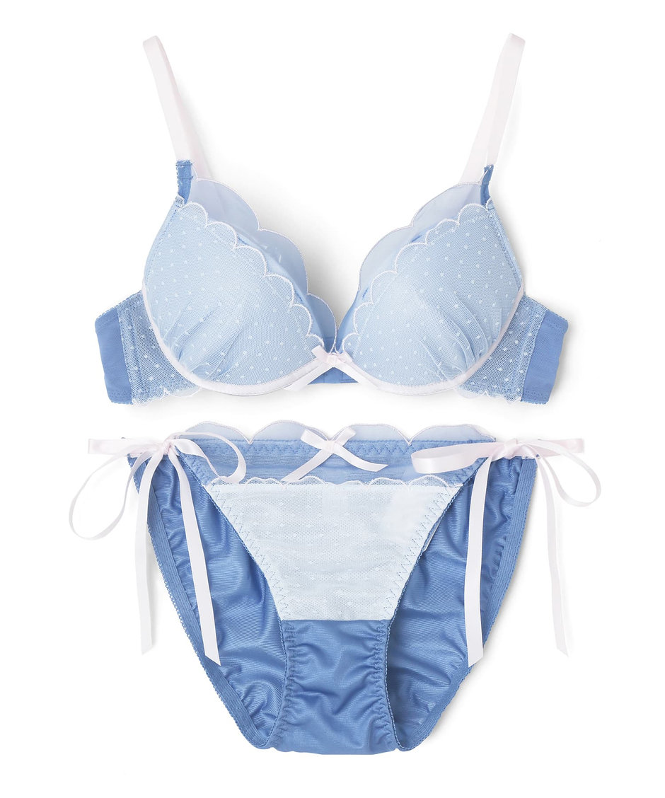 フェミニンなドットチュールネットに軽やかなスカラップの刺繍を施したとってもラブリーなアイテムです。