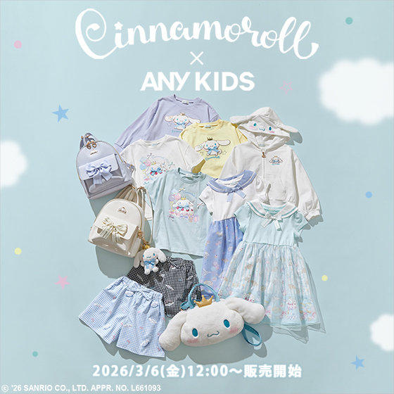 シナモロールのお誕生日3/6に合わせてANY KIDSから、毎日をハッピーにしてくれる、スペシャルなコラボアイテムが登場♪