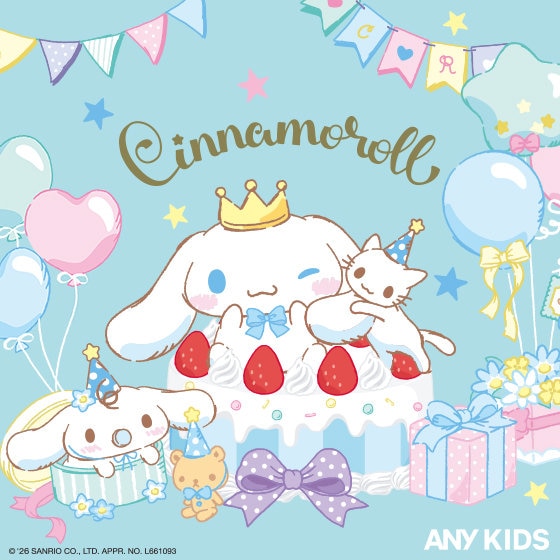 シナモロールのお誕生日3/6に合わせてANY KIDSから、毎日をハッピーにしてくれる、スペシャルなコラボアイテムが本日より販売スタート♪