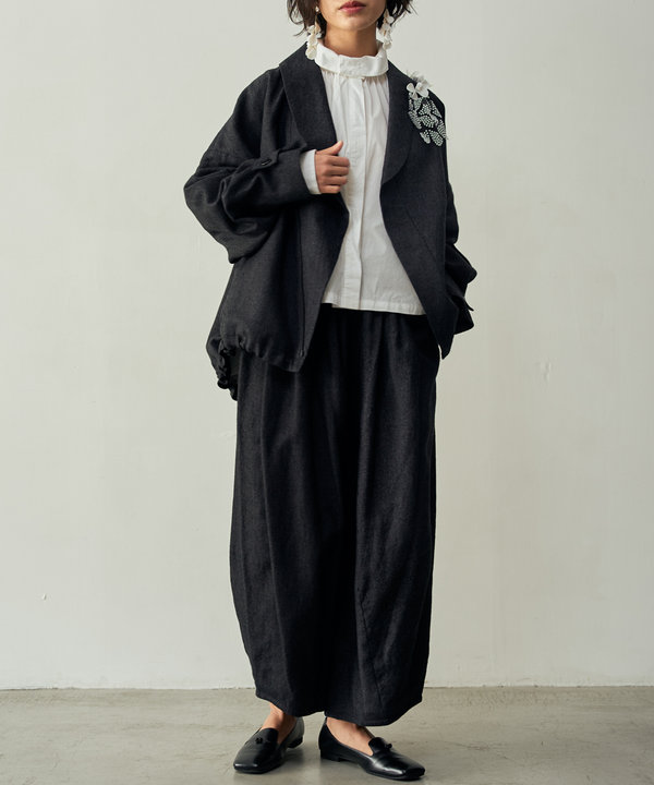 お顔まわりを優しく包むショールカラーは、上品に見えることはもちろん、うれしい小顔効果も。