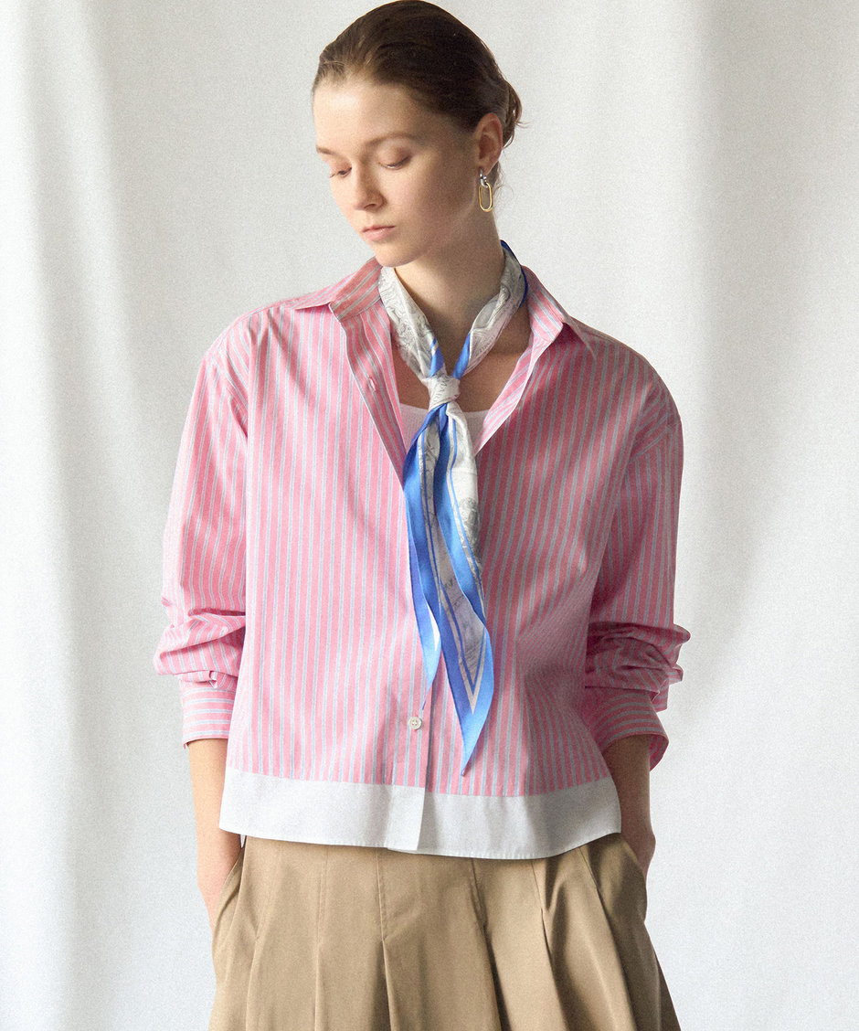 CANCLINI レギュラーカラー ストライプ クロップドシャツ ¥19,910(税込)>Lサイズ >Sサイズ