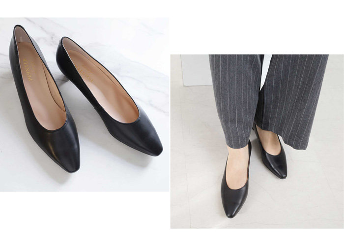洗練されたスクエアトゥを追求したプレーンパンプス。