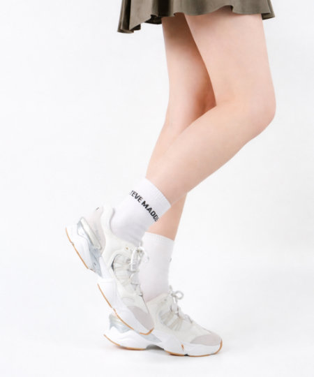 寒さの残る今の時期は、ソックス合わせで季節感を調整。