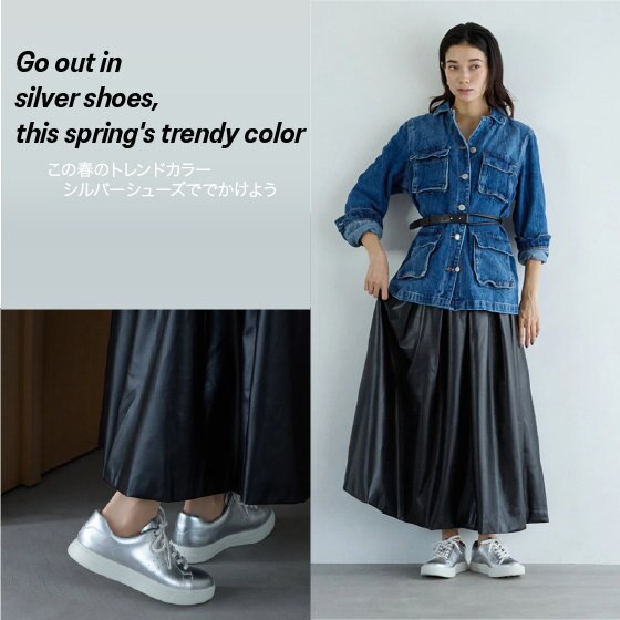 この春のトレンドカラーのシルバーシューズででかけよう