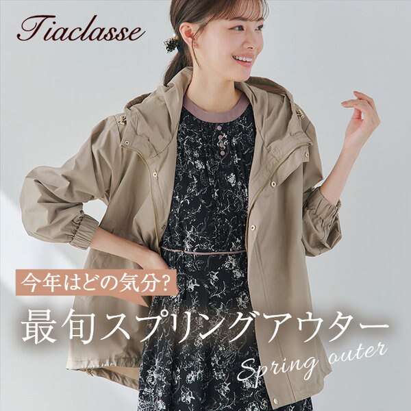 Tiaclasseの定番マウンテンコート。ウエストにドロストを仕込んでいて、気分によってシルエットに変化をつけれちゃいます♪おすすめの着方はしっかり絞ってウエストをシェイプさせた美ラインスタイル。さらに軽撥水機能で急な雨にも安心!軽いので持ち運びにも便利なのも嬉しいポイント。