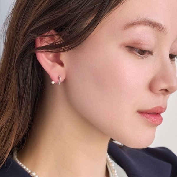 【痛くないシリーズ】ラインストーンパールフロートライトフィットイヤリング シルバー