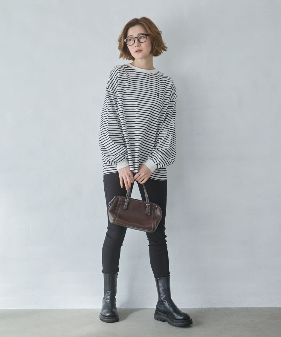 ・デニム、スラックス、スカートなど幅広いボトムと好相性