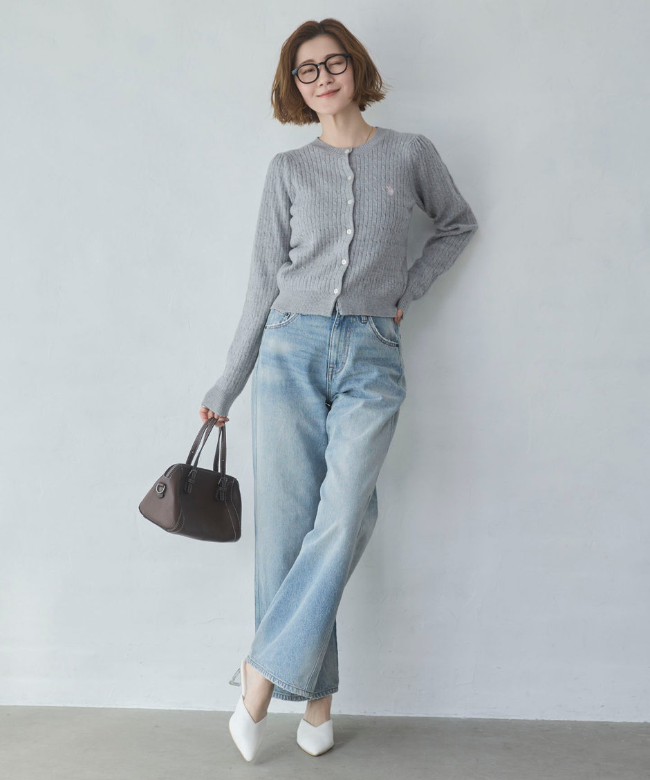 表情のある編地が魅力のケーブルニットカーディガン