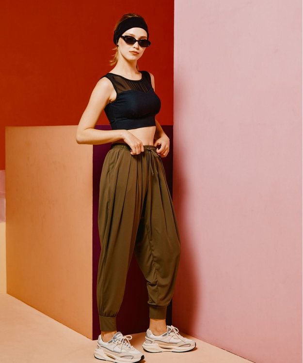 ヨガ・ピラティス・ジム・ランニングなど「屋内」「屋外」での着用はもちろん、ビーチ・SUP・マリンアクティビティ・プール・川遊びなど「水辺」でのアクティブシーンでも着用できる、水と陸の垣根を超えた「水陸両用の機能を兼ね備える」マルチウェアです。