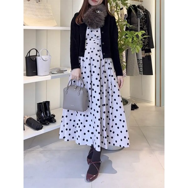 ニットカーディガンを合わせ、通勤からお食事会まで活躍する、上品できちんと感のあるクリーンなスタイル。