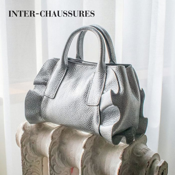 甘さ控えめ。フリルが映えるシルバーバッグ