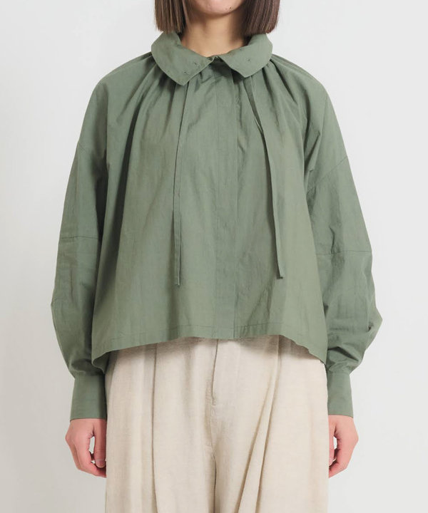 柔らかいのにハリがあるため、襟の形がふんわり決まります。