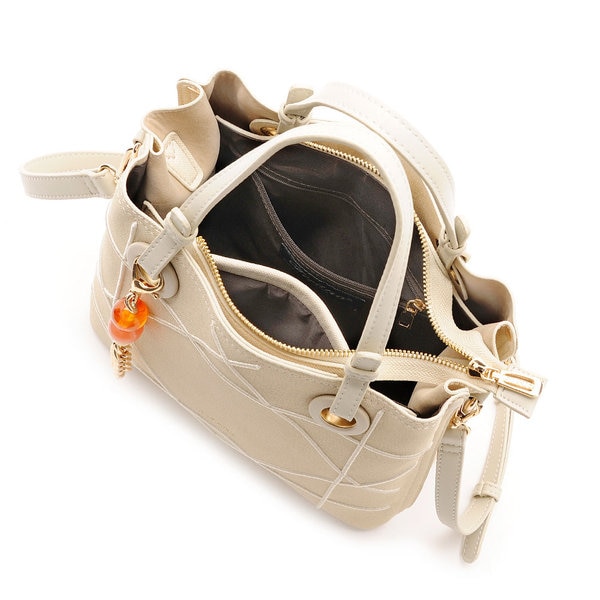 内側には2つのポケットを備え、スマートフォンや小物もすっきり整理しながら持ち歩ける、使い勝手の良いデザインです。